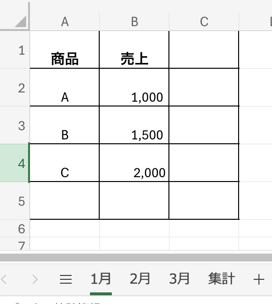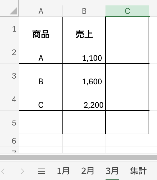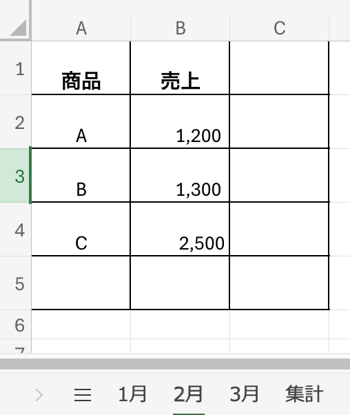 たとえば「1月」「2月」「3月」とシートを分けて売上を入力し、最後に「集計」シートで合計を出す、といった使い方です。