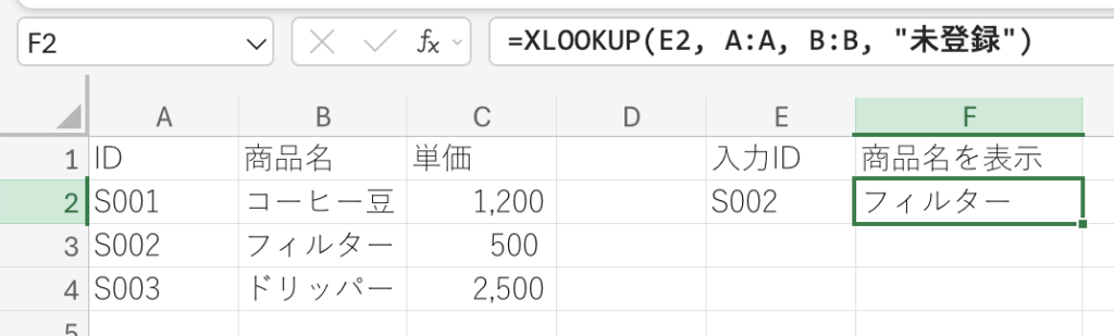 2. XLOOKUPの基本の書き方と計算例